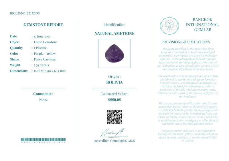 • Verify Report Online At Www.Bangkokinternationalgemlab.Co