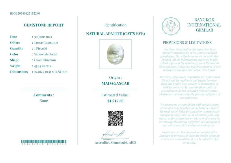 47.94 CARATS CERTIFIED NATURAL APATITE (CAT'S EYE)
