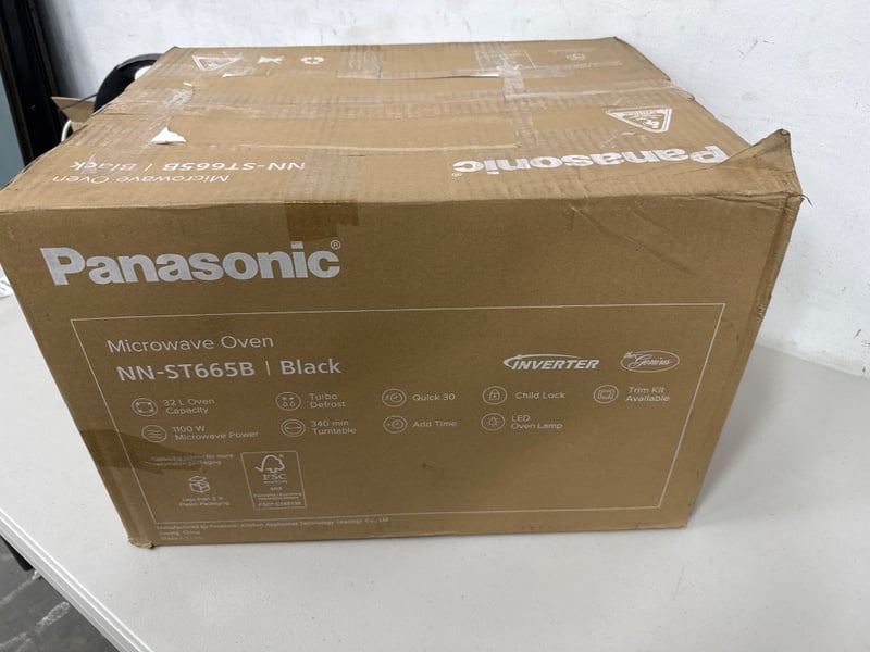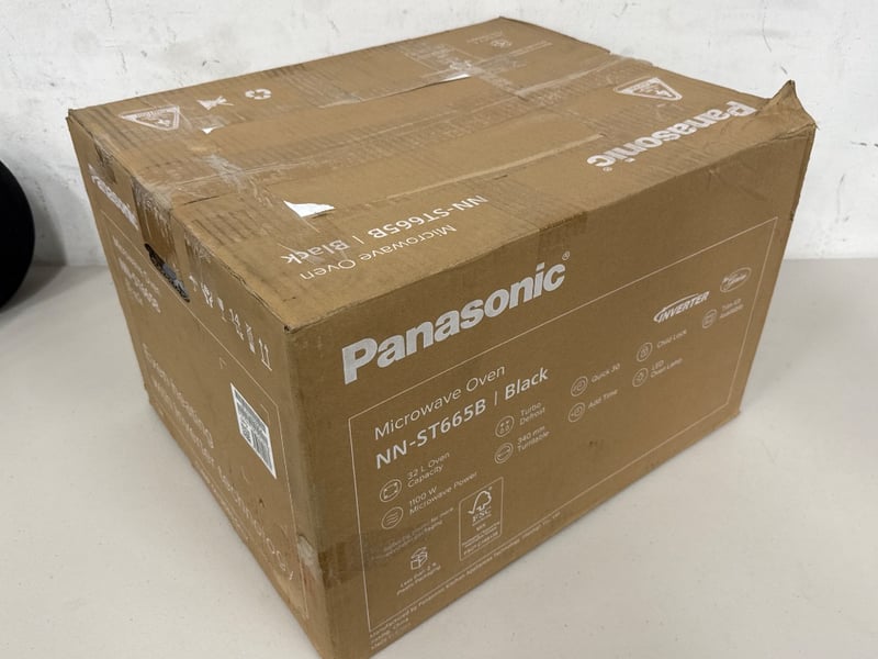 Panasonic NN-ST665B Inverter Microwave Oven – Black • Model: NN-ST665B • Capacity: 32 L • Power: 1100 W microwave • Technology: Inverter • Colour: Black • Features: Turbo defrost, quick 30, add time, child lock, LED oven light • Turntable: 340 mm