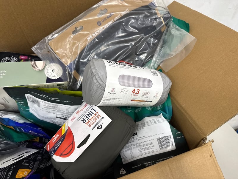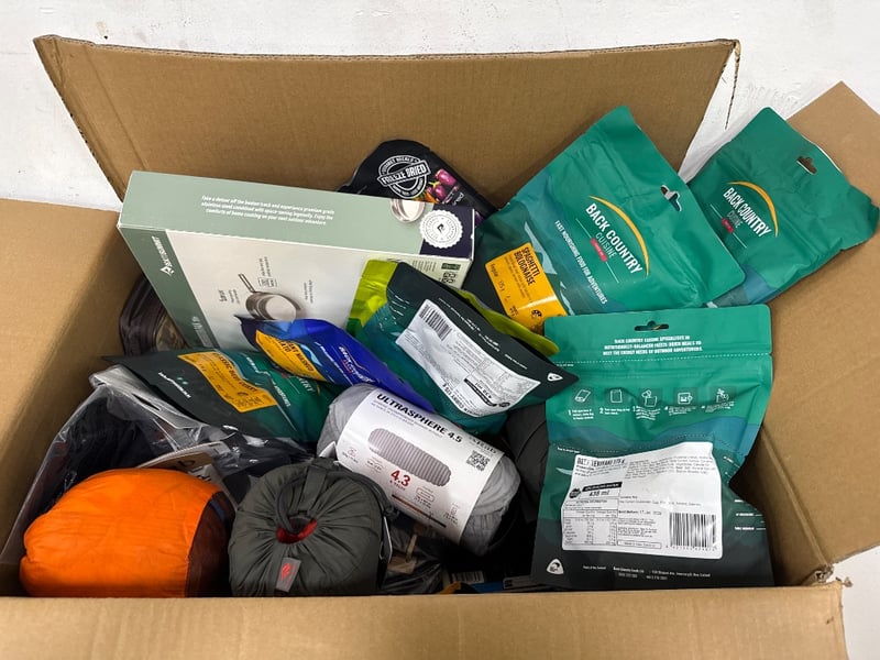 Mixed Camping & Outdoor Gear Lot – Food, Cookware & Accessories • Category: Camping / hiking equipment & meals • Includes: Dehydrated meals, instant food packs, cookware items, camping accessories • Meal type: Just-add-water / no-cook options • Use: Hiking, camping, outdoor adventures, emergency kits • Quantity: Mixed bulk lot (as pictured) • Condition: New, unused items (some loose, some boxed) SOLD AS LOT