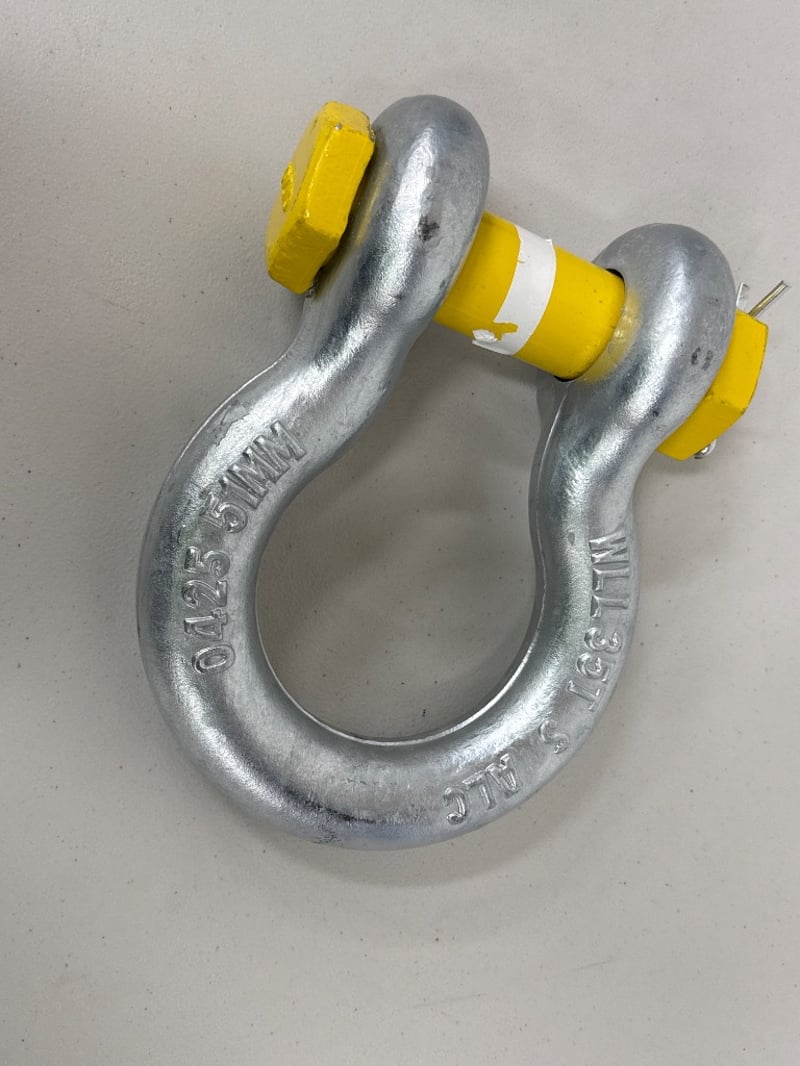 Bow Shackle – 51 mm (WLL 35 Tonne) • Type: Bow (anchor) shackle • Size: 51 mm • Working Load Limit (WLL): 35 tonne • Material: High-strength steel • Finish: Galvanised • Pin: Bolt-type with nut & split pin