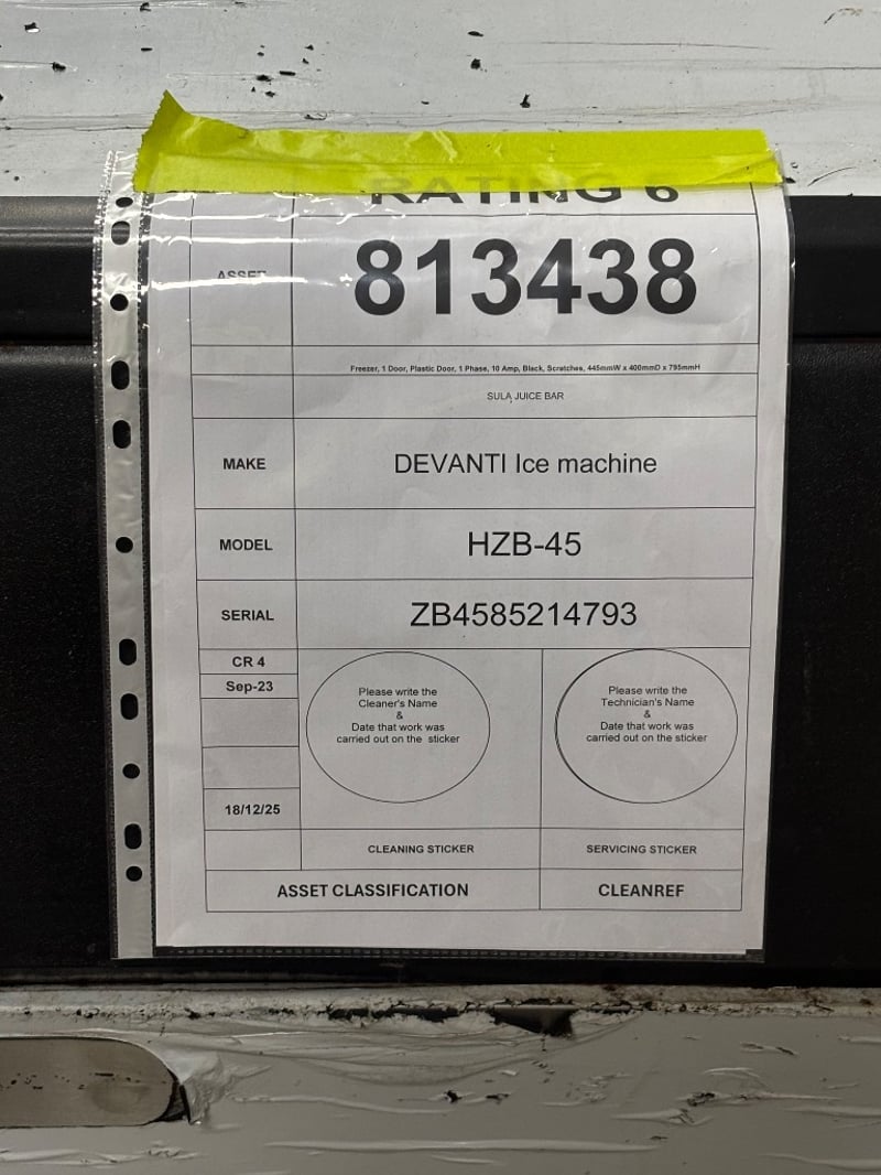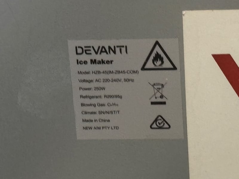 Ice Machine, Brand: Devanti, Model: HZB-45, Freezer, One Door, 1 Phase 10 Amp, ScratchesCondition: UntestedDimensions: 44.5cm x 40cm x 79.5cm