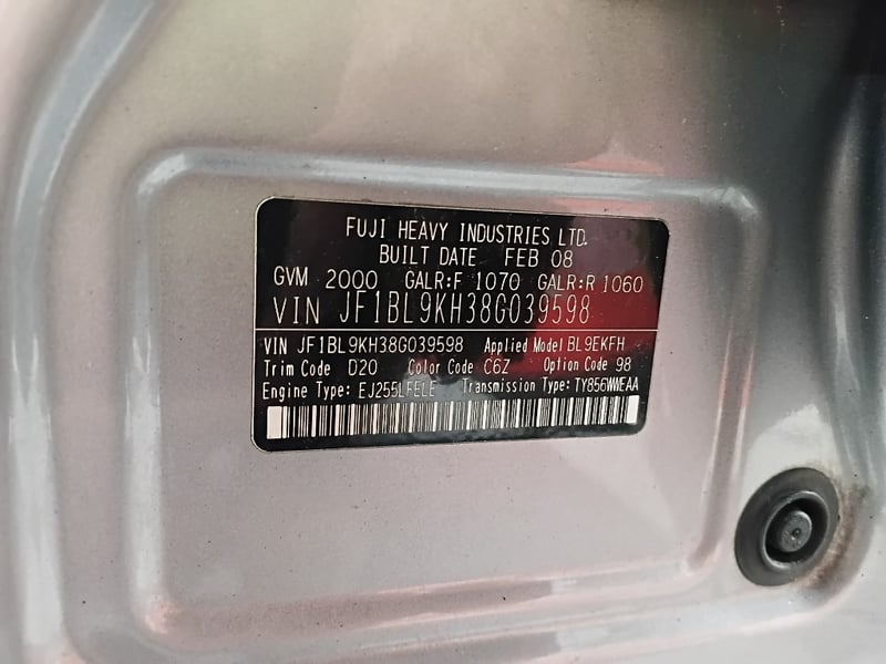 VIN: JF1BL9KH38G039598