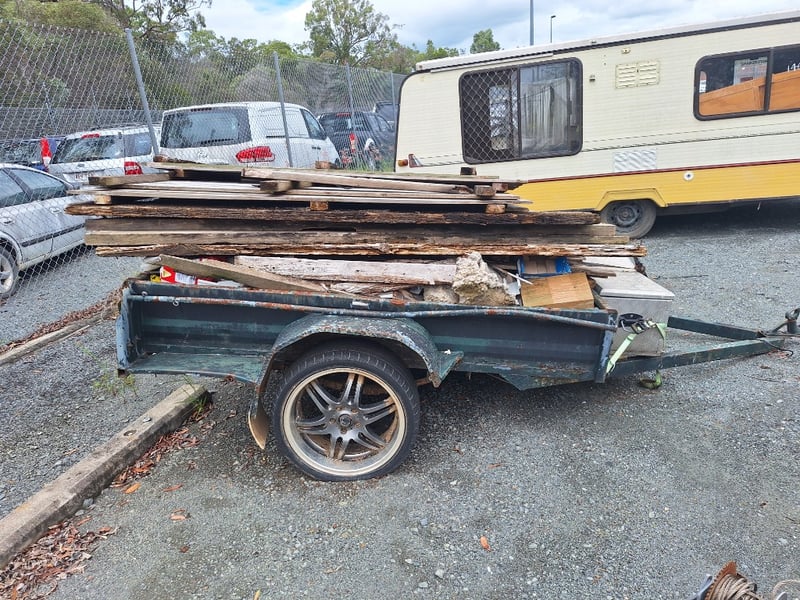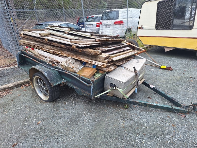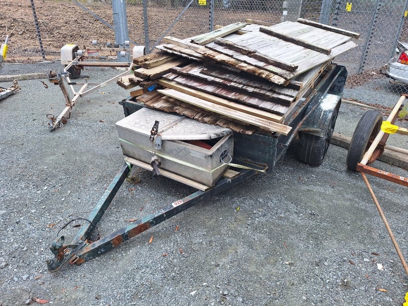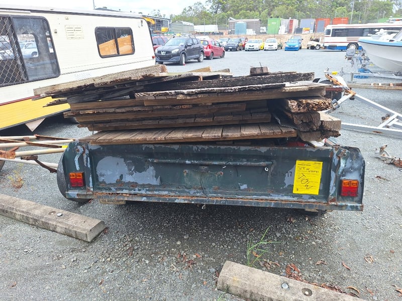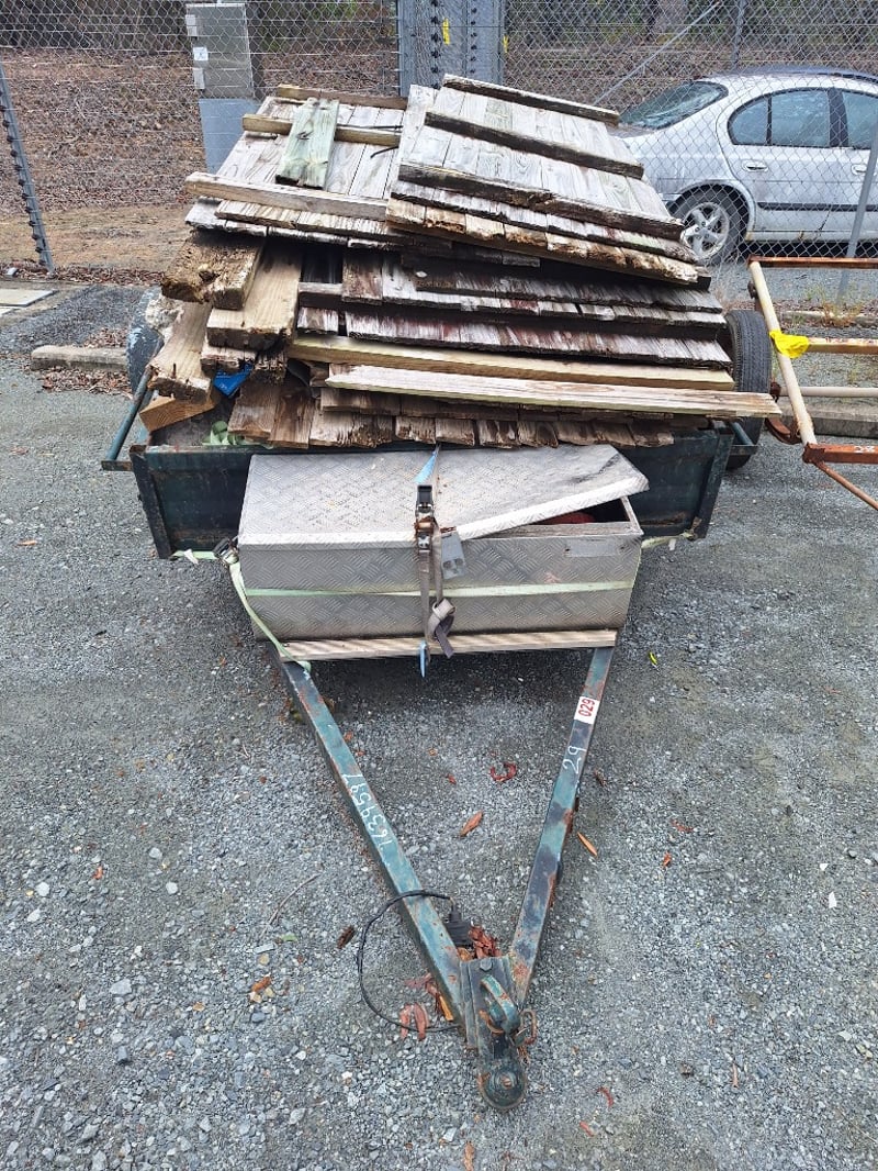 Box Trailer And Contents, Green Box Trailer, Includes Content's, Single Axle, Leaf Springs, Tool Box, Approximate Dimensions Including Drawbar 3500mm (L) x 1730mm (W) Asset No: 1639597 Location: Pimpama, QLD