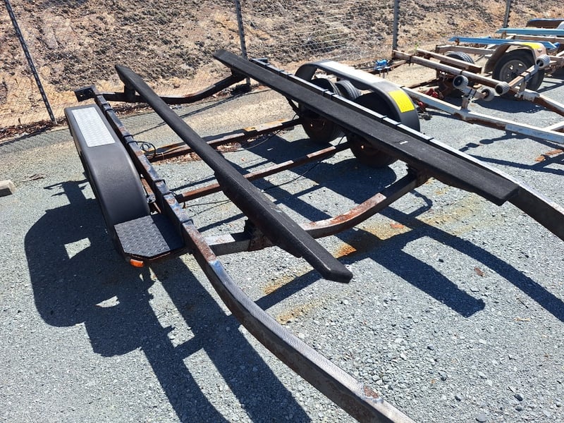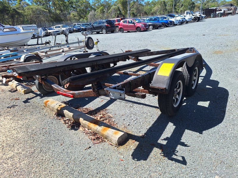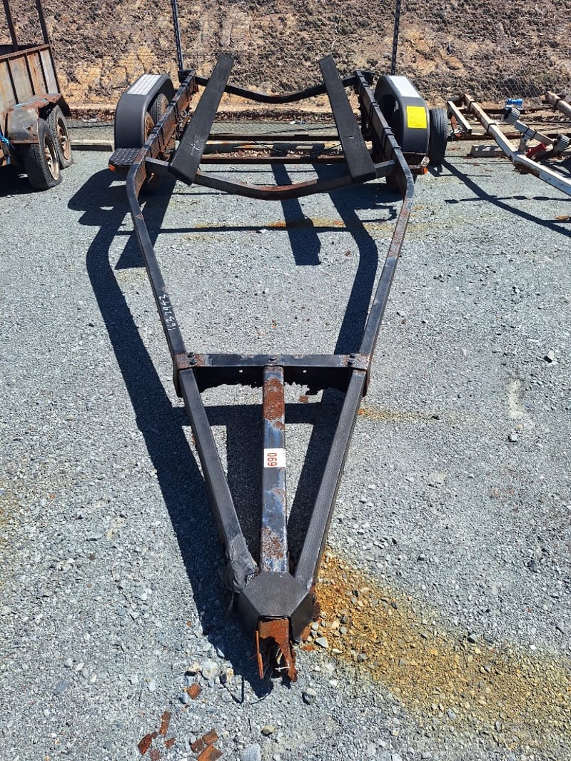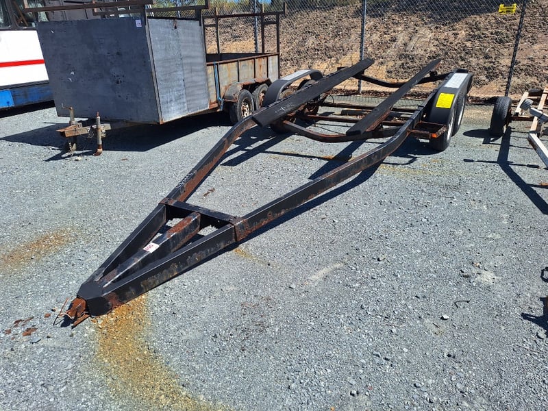Dual Axle Boat Trailer Year: Unsighted Make: Unsighted Model: Dual Axle Boat Trailer Description: Missing Hitch, Rust Evident, Approximately 6100mm (L) x 2400mm (W) Asset No: 1632943 Location: Pimpama, QLD