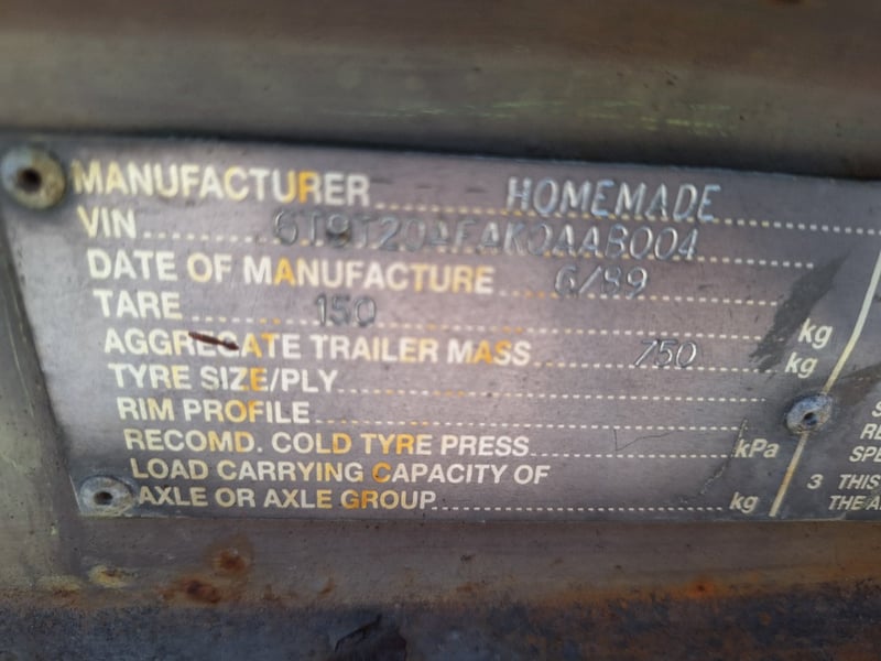 1989 Homemade Box Trailer Year: 1989 Make: Home Made Model: Single Axle Box VIN: 6T9T20AFAK0AAB004 Description: Single Axle, Front Mounted Tool Box, 50mm Hitch Asset No: 1667090 Location: Pimpama, QLD