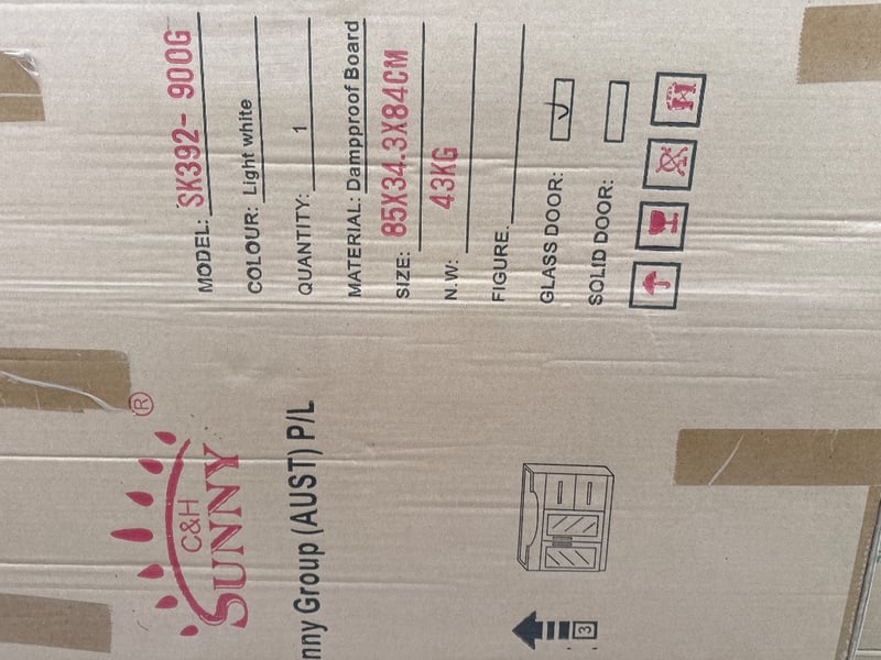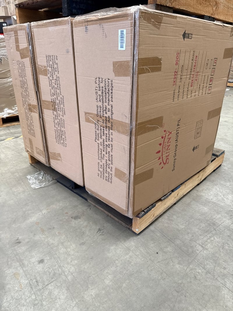 RRP $2000 , Vanity, Sunny Group, SK392-900G, Light White, 2 Draws and 2 Doors. Approx Dimensions-85x 34.3x 84 CM. Quantity-4 to pallet. Sold as lot.