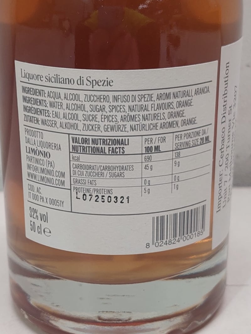 Italian Liqueur, Liquoreria Limonio Speziale, Volume 32% 500mL