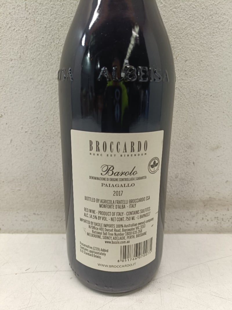 Italian Red Wine, Denominazione di Origine Controllata E Garantita, Barolo, Paiagallo 2017, Volume 14.5%, 750ML