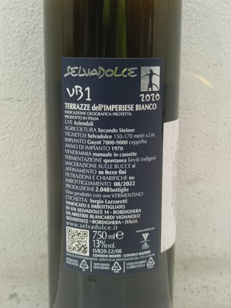 Italian White Wine, Selvadolce, Terrazzle Dell'Imperiese Bianco 2020, Volume 13%, 750ML