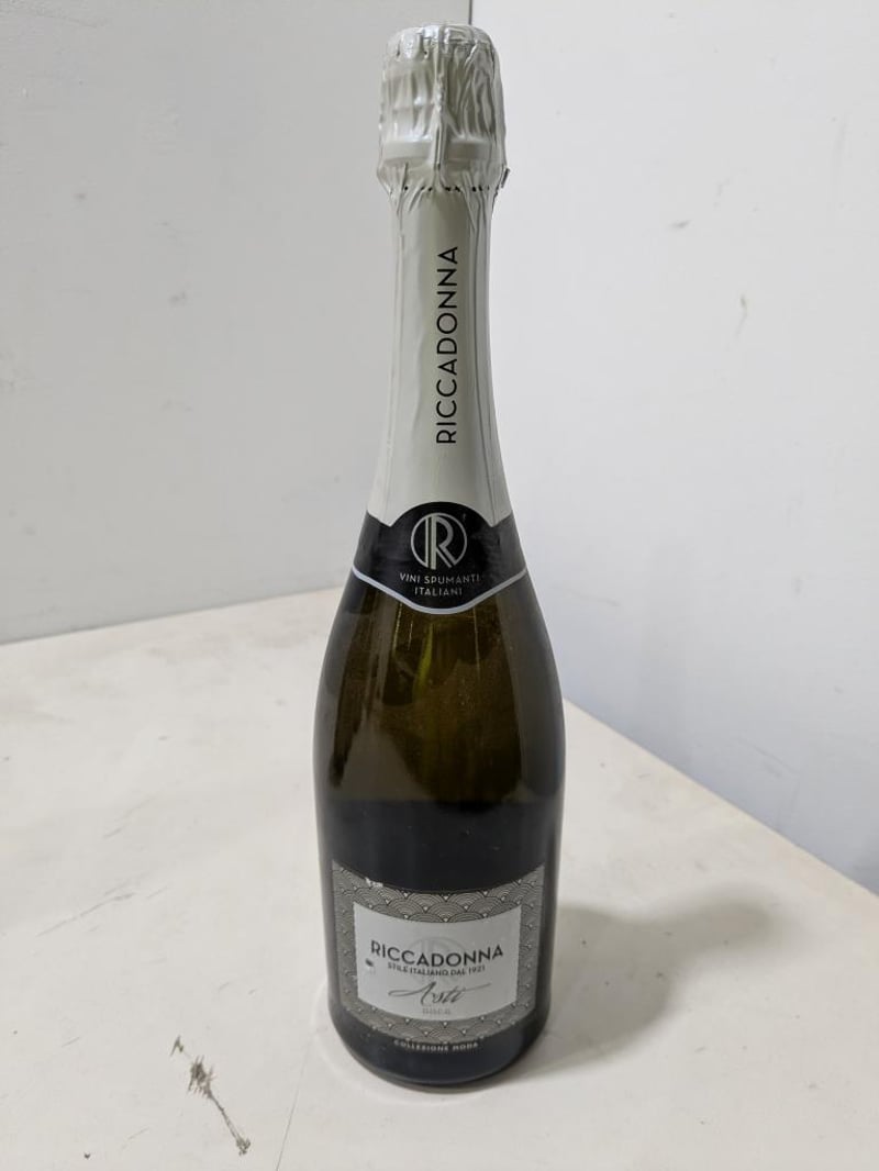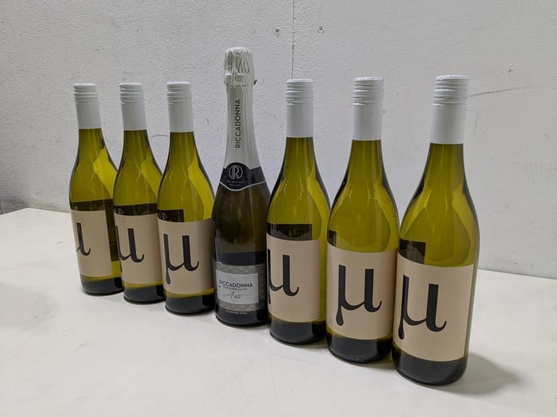 Assorted wine bottles includes:•2021 Chardonnay contains 750 mL and 12.5% ALC/VOL., Qty x 6•Riccadonna contains 750 mL and 7% ALC/VOL. Qty x 1Sold as a lot.