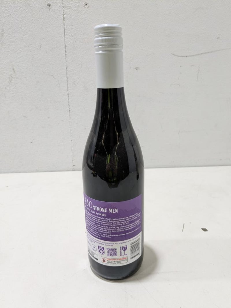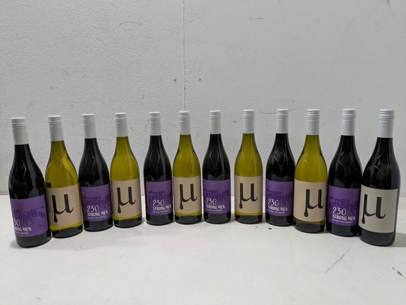 Assorted wine bottles includes: •2021 Chardonnay contains 750 mL and 12.5% ALC/VOL. •Strong men Grenache 2022 contains 750 mL and 13.5% ALC/VOL. QTY: 12 per carton Sold as a lot.