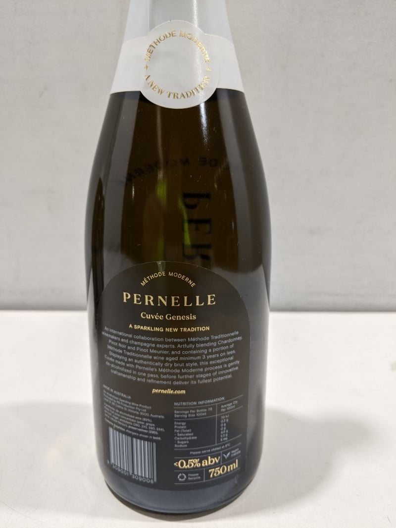 Pernelle Cuvée Genesis – Alcohol-Free Sparkling Chardonnay (750mL), Qty 4x BottlesSold as lot