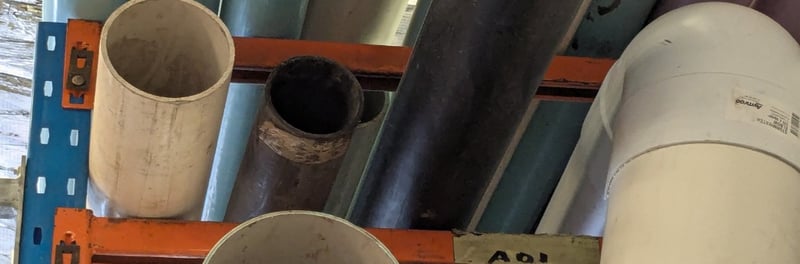 Assorted lot of large-diameter cylindrical pipes and tubes in various materials and finishes. Assortment includes cream/off-white PVC or composite pipes, dark grey/black steel or metal tubes, and light-coloured composite cylinders. Sold as lot Note: Items may be new, used, or untested, and their condition or functionality is not guaranteed.