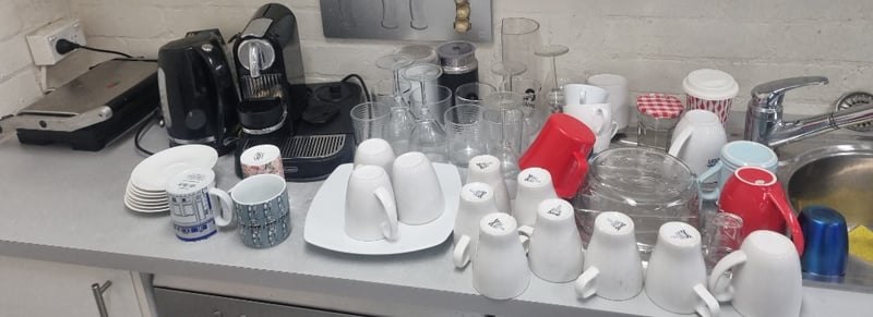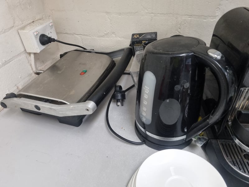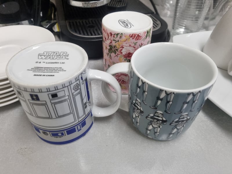 Comprehensive kitchenware collection featuring Star Wars licensed merchandise. Includes Nespresso Citiz espresso machine (black, with capsule system), electric kettle, sandwich press/grill, and more sold as lot
