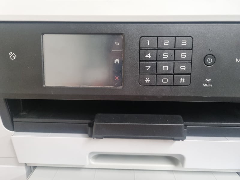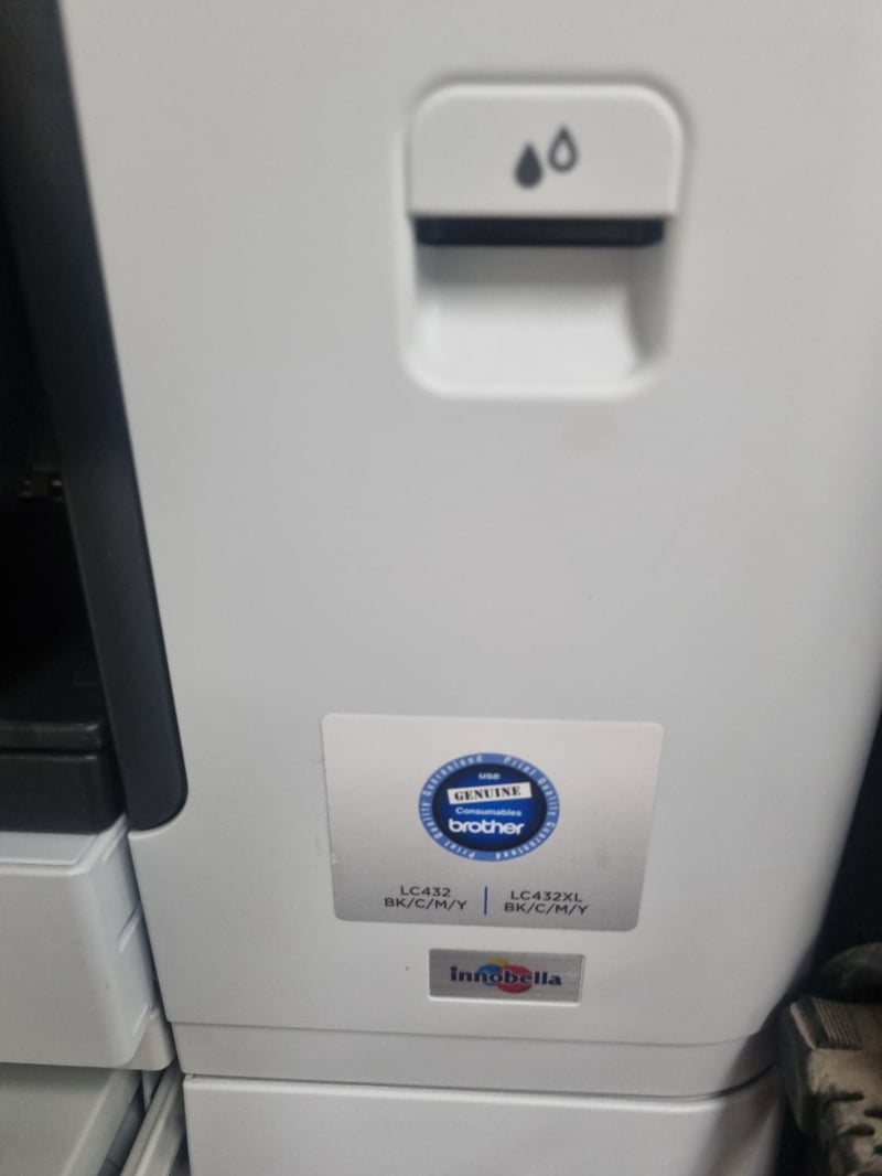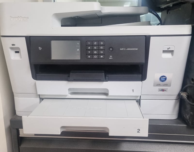 Brother MFC-J6940DW multifunction inkjet printer with dual paper trays (Tray 1 and 2 visible). Features 3.7" touchscreen display, numeric keypad, WiFi connectivity, and automatic document feeder. Note: Items may be new, used, or untested, and their condition or functionality is not guaranteed.