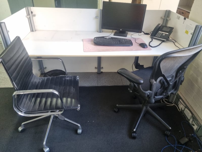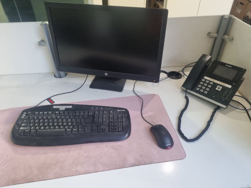 Office Equipment lot, includes 2 x office chairs, HP desktop and more.. Serial number: CNK74715HF Sold as lot Note: Items may be new, used, or untested, and their condition or functionality is not guaranteed.