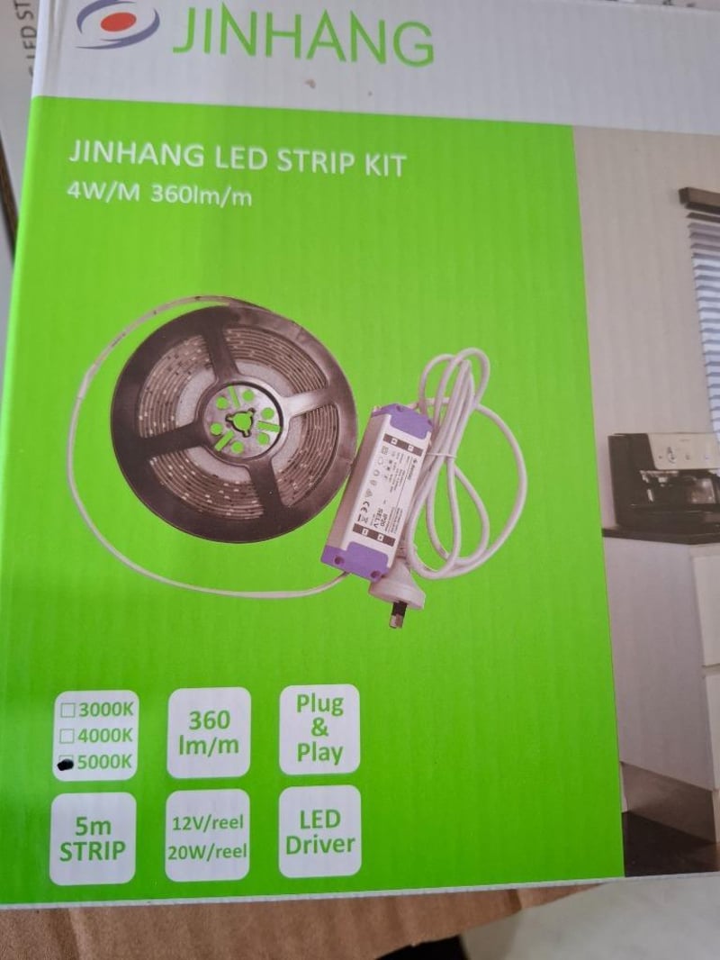 RRP $1580 Combined, LED Strip IP65 4W/5M 5000K W/DriverQTY: 10 pcsMODEL: JH-DD2835-IP65-5000K-Kit-NZPRODUCT DIMENSIONS: 5m strip