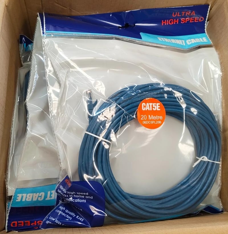 RRP $600 Combined, Matrix CAT5E RJ45 Patch Cord 20M BlueQTY: 12pcsMODEL: CS-TE-PC5E20.0-BLU-NZPRODUCT DIMENSIONS: 20m