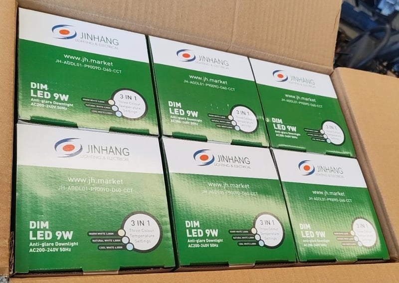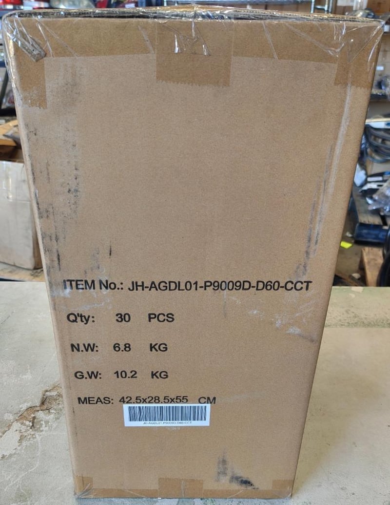 RRP $1459.8 Combined, JinHang Anti-glare Downlight 9W 60D Tricolour 90mm Cut-outQTY: 30MODEL: JH-AGDL01-P9009D-60D-CCTDIMENSIONS: 112 x H69.5mm