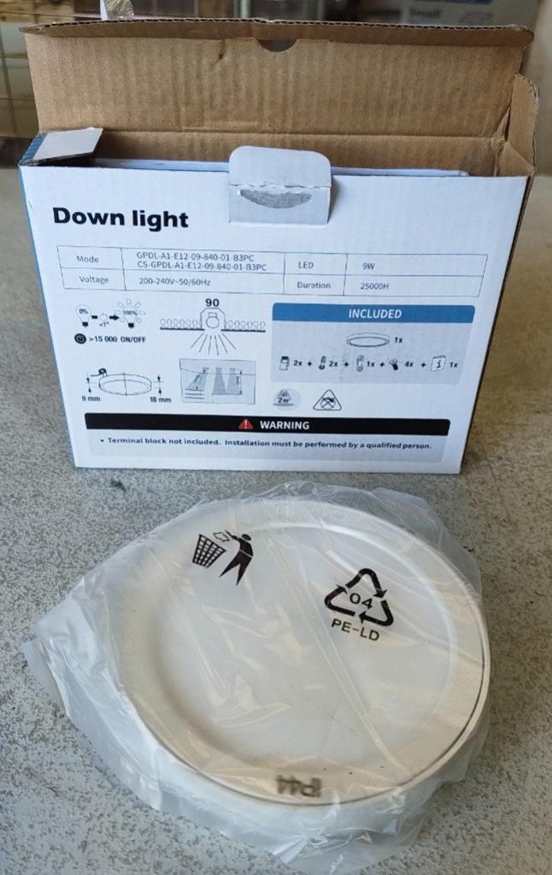 RRP $1508.04 Combined, Gulite 9W 2-in-1 LED Downlight 4000KQTY: 36MODEL: CS-GPDL-A1-E12-09-840-01-B3PCITEM DIMENSIONS: Ø123.7 x H18.7mm