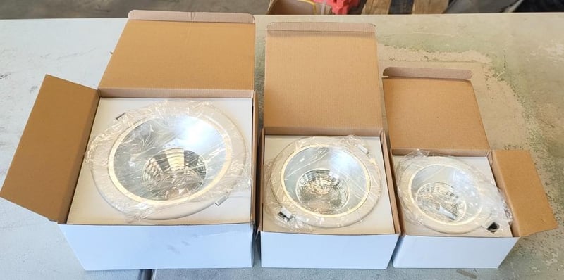 Assorted Box of Electrical Components, Models Vary, including Various Size LED DownlightsSold As Lot