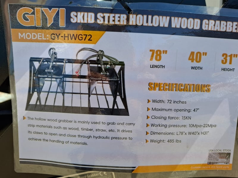 FACTORY DIRECT** 2025 Unused GIYI GY-HWG72C Skid Steer Hollow Wood Grabber