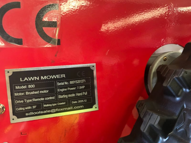 FACTORY DIRECT** 2025 Unused MMS MS800, Remote Lawn Mower - [Landscaping Equipment]Motor: Brushed motor remote control ,cutting width 550mm, blade can be liftWhole machine size: 930*860*580mmPacking size: 1060*960*810mmWhole machine weight: 130 kgCutting width: 550mmAdjustable height: 10-150mmCutting height: 20-150mmWalking speed: 0-6km/hWorking slope: 0-30'Minimum distance from the ground: 20mmWalking Way: Crawler walkingcontrol voltage: 12vEngine Brand: LONCIN(Optional brands Yamaha, Dajiang)Engine Power: 7.5hpEngine Type: Vertical axis four strokeS/N: 800YS251271Please note: minor scuffs and marks may be evident For more information Contact King Cheung on 0477987576 or [email protected] *** PLEASE NOTE Collections must occur within 7 days of Auction Ending*** Note: OEM images and VIDEOS shown are for illustration purposes only, and used as a guide only, inspections highly recommended.
