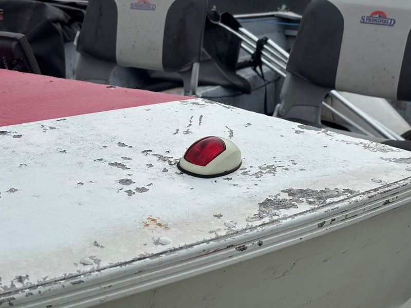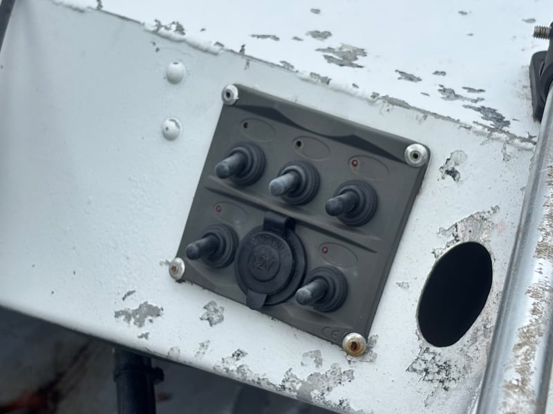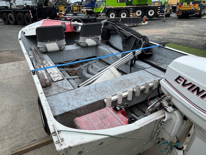 Description: Two Wooden Oars, Boat Awning, Fishing Rod Holders, Lowrance Elite-4x Fish Finder