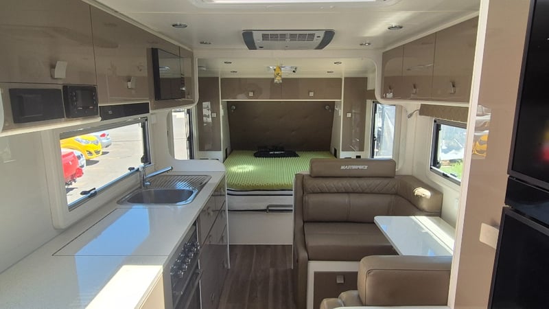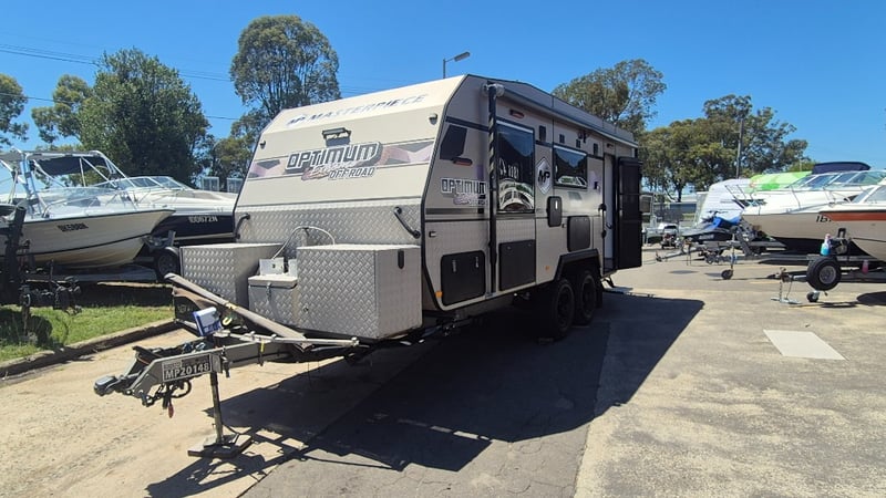 2021 Masterpiece Optimum Caravan Sandy TaupeYear: 2021Make: MasterpieceModel: OptimumBody: CaravanLength: 9300mm x 2500mmColour: Black/WhiteDescription/ extras:2021 Masterpiece Optimum Offroad Extreme 20FT 8NEW AWNINGSIDE AWNING2X End AWNINGFlooringD/S Awning for fridge and windowD/S Bed Window Awning Grey Water hose and fittings2x Antiflap kits for awning2x Rafter for awning2x Leaving ramps with chocksJackVynil Cover for hot water and rear storageAuto Satelite system - complete with vast Fusion Loc Shower CaddyNew label for toilet Sucktion works toilet roll holderRV WifiMattress TopperStone Stomper CompleteBOS 370 Jockey Wheel with DUAL Tyres Accessory and plateVIN: 6T9T21V86LAJ9M148Length Overall: approx 9300mmTare: 2942kgATM: 3500kg2021 Masterpiece Optimum Offroad Extreme 20FT 8Key# MMR37 MARPLE#MMR