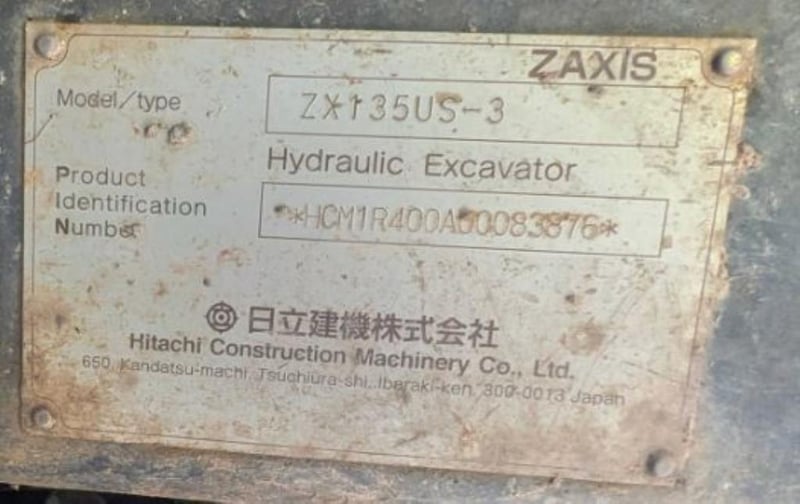 2010 Hitachi ZX135US-3 Excavator & Attachments