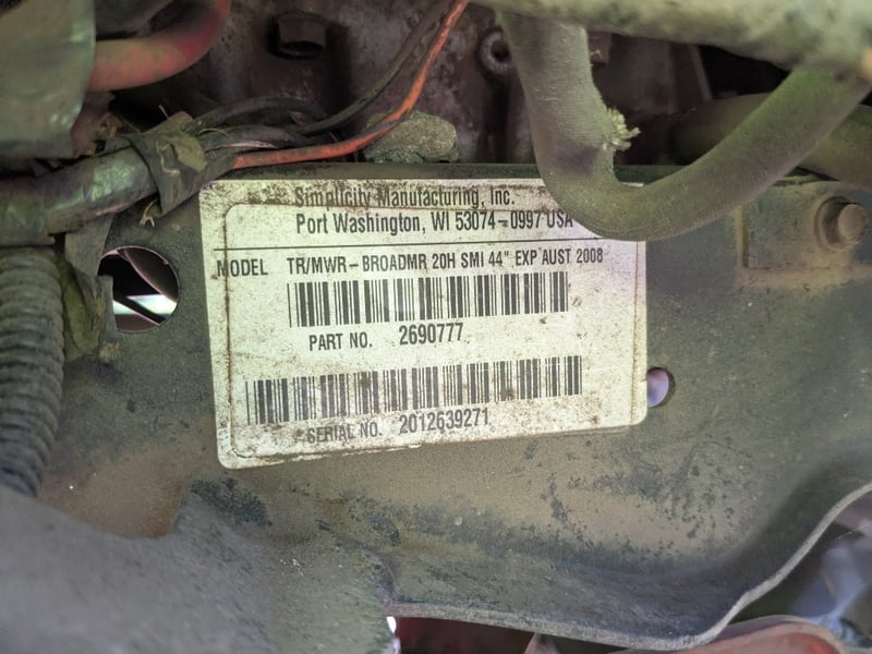 2008 Simplicity TR/MWR - BroadMR MowerYear: 2008Make: SimplicityModel: TR/MWR - BroadMRSerial no: 2012639271Hours: 1141.6hDescription: Runs, Adjustable Height, Speed options, Headlights