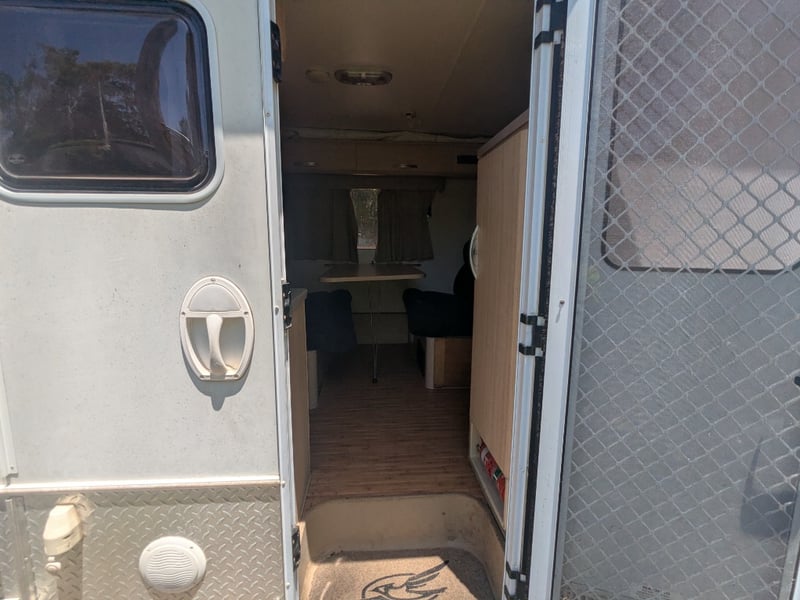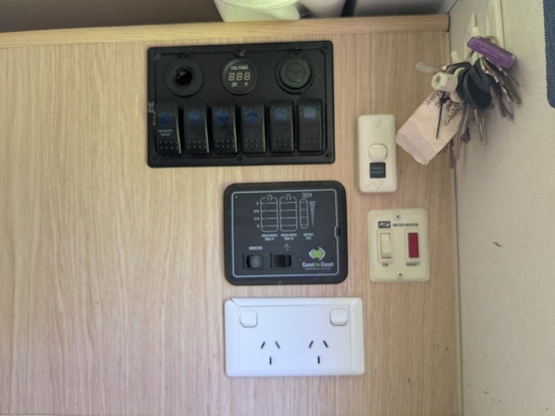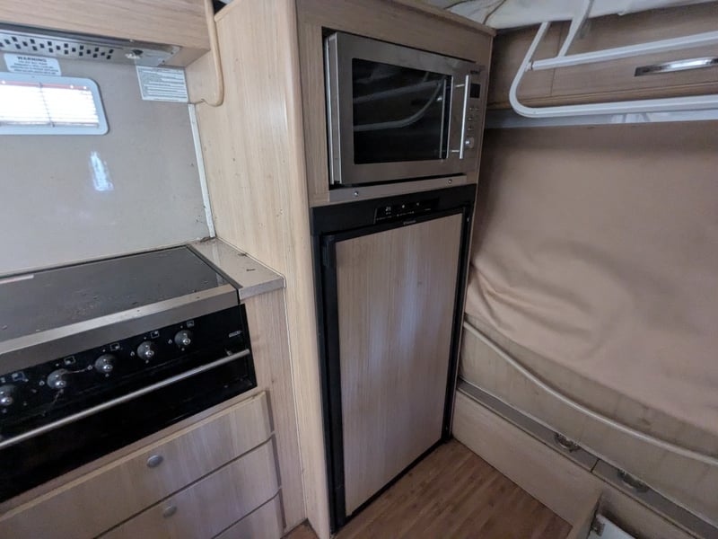 Description/ extras: Sink, Stero, stovetop, easy access step, Oven, Awning, 2 single beds, Dual Gas setup, AirCon, Power Outlets, Switchboard, Overhead storage, Microwave, External Storage box, reverse camera, 7 pin connection,