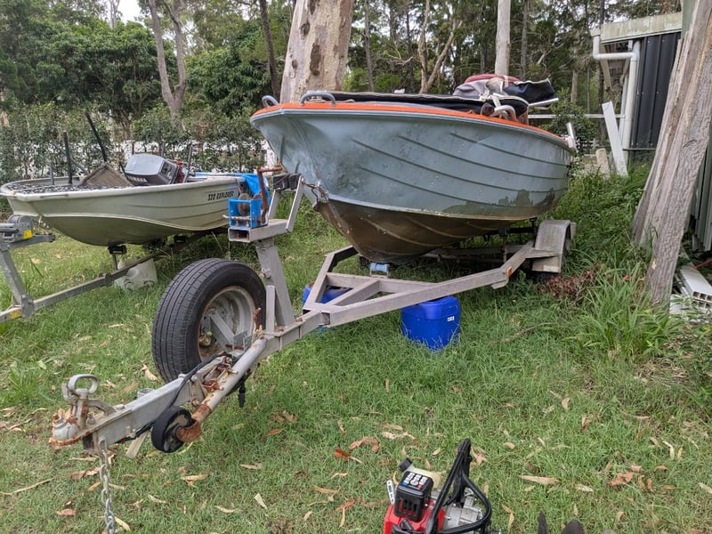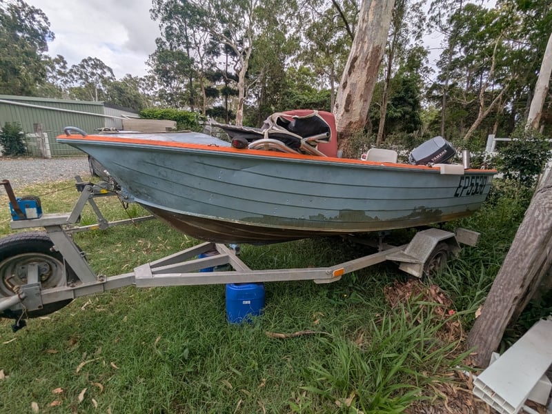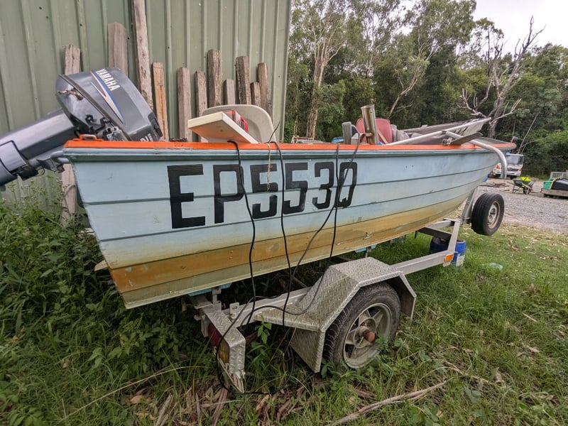 Fishing Dinghy with Yamaha Outboard Motor on Trailer