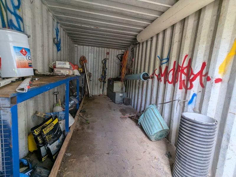 Note: Container Only, Major wear, cracks, rust, Fixed shelving will go with container,