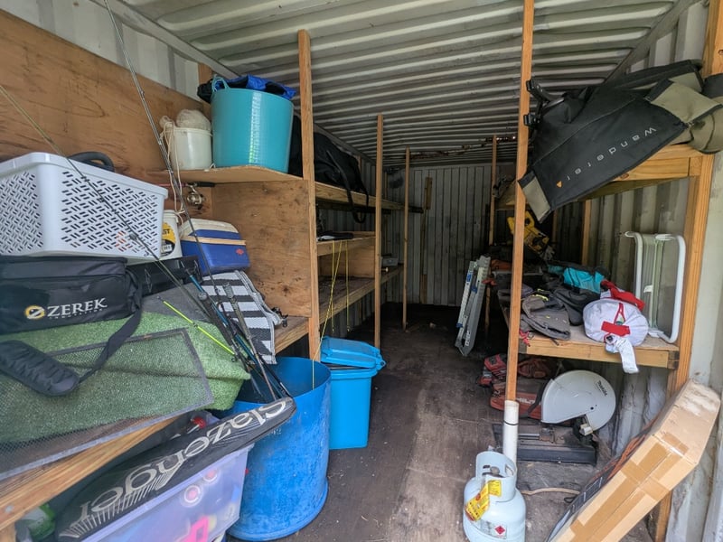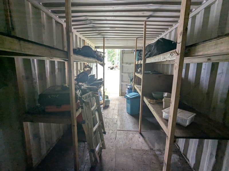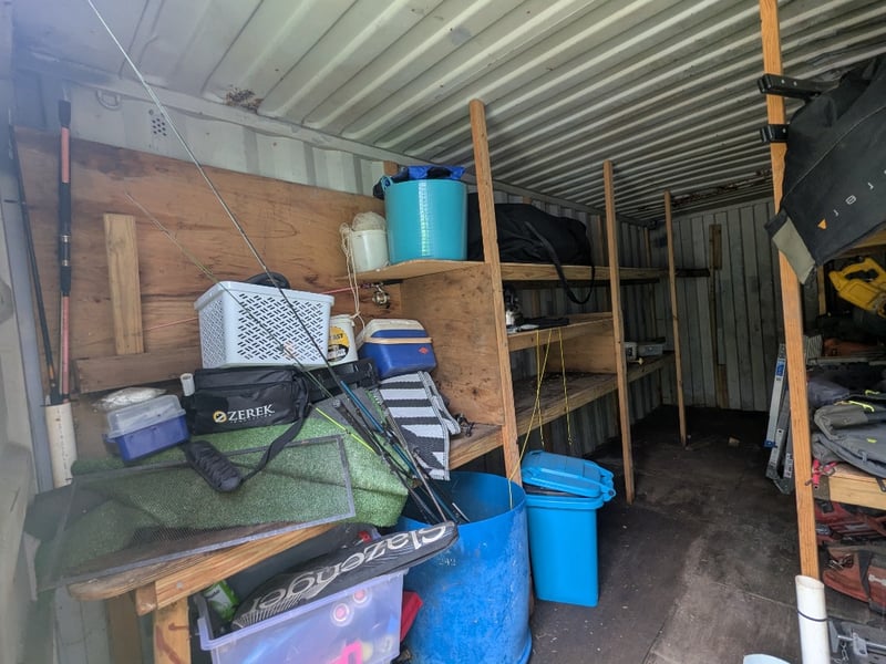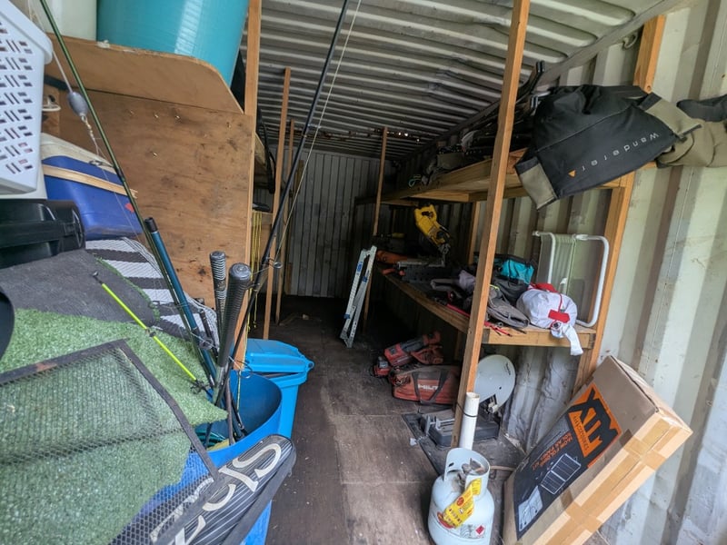 20ft Shipping Container Note: Container Only, Major Wear, Fixed shelving will go with container, Collection after empty