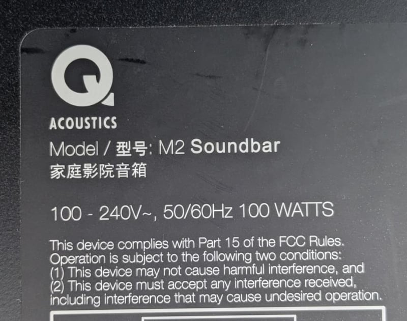 Q Acoustic model M2 soundbar with built-in subwoofer and bluetooth speaker 100 watts