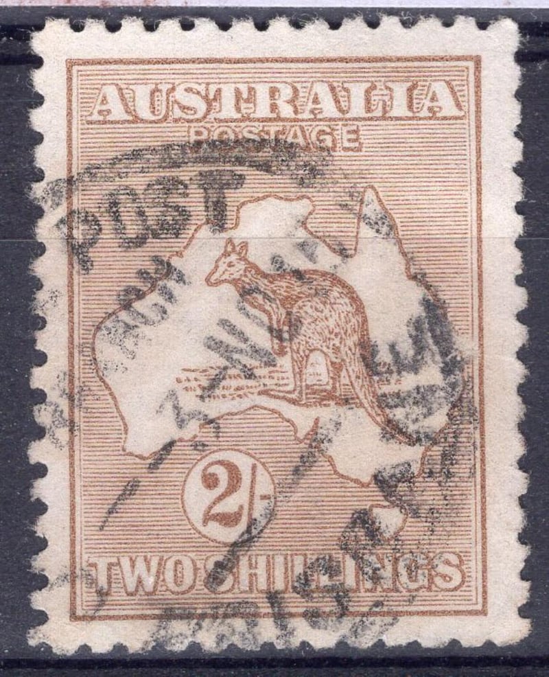 Australia Stamps: 2/- kangaroo stamp 1st watermark, 1913 issue, ACSC 35A