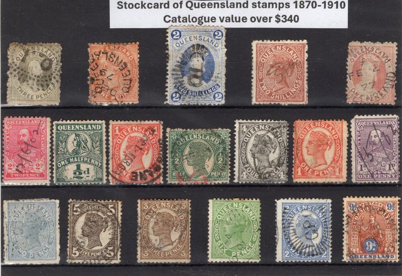 Queensland stockcard of Queen Victoria era stamps 1870-1910