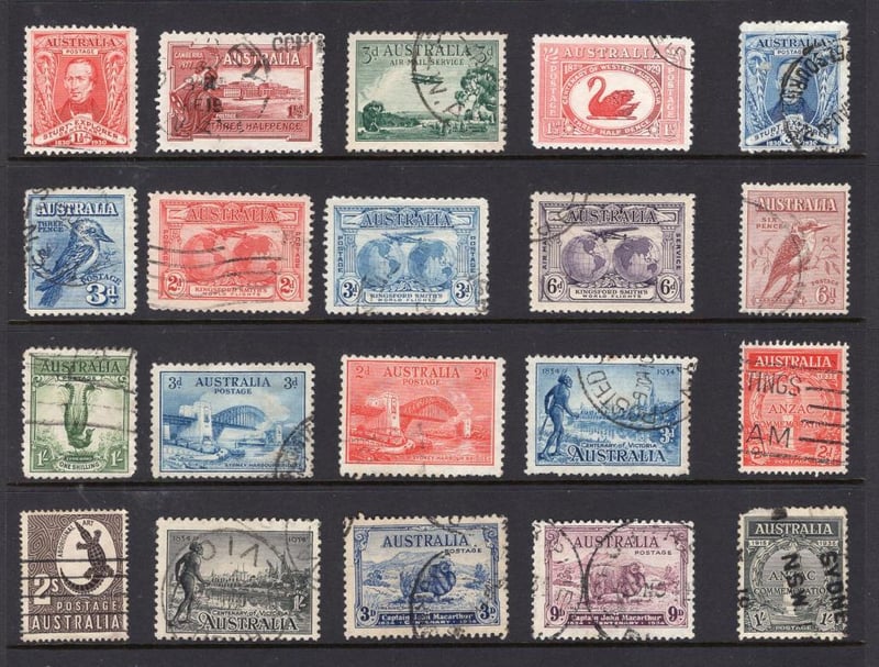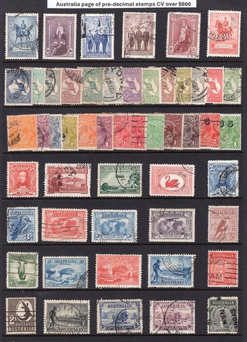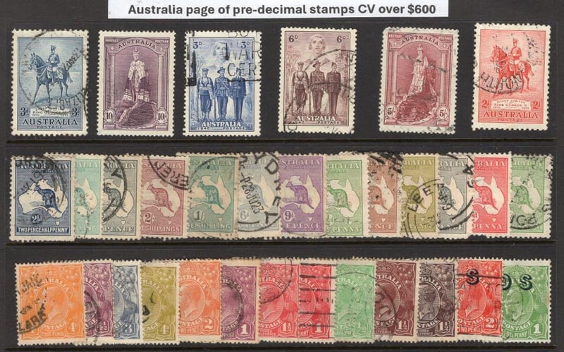 Australia page of pre-decimal stamps including kangaroo and KGV, forces set etc 50+ stamps