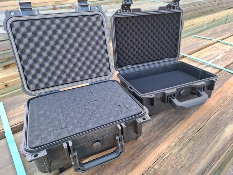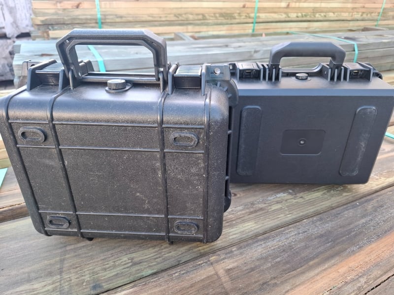 Black Equipment Cases x 2 15cmH x 34cmW x 29cm D • Weather Proof • Foam Lined
