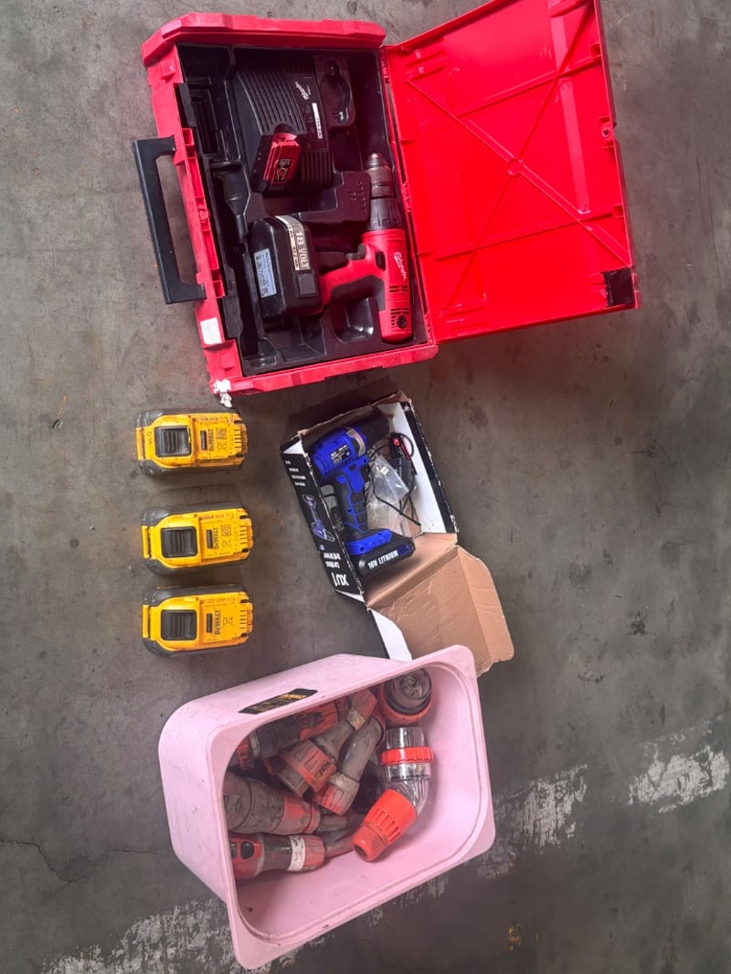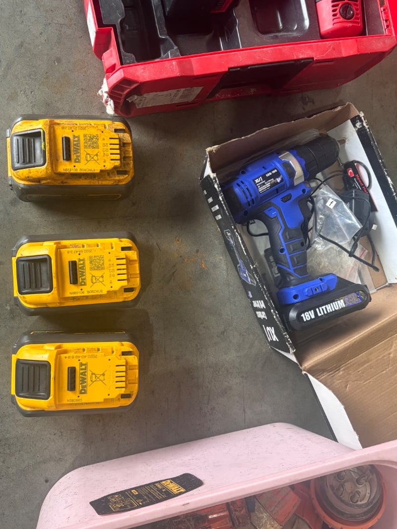 Assortment Lot Of Tools And Accessories Including Milwaukee Drill, DeWalt Batteries And More