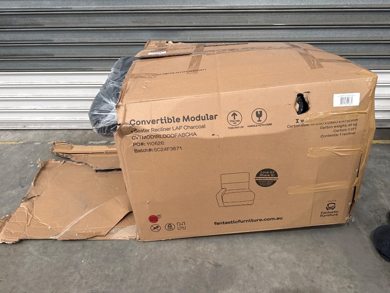 Fantastic furniture charcoal convertible Modular 1 seater recliner, model; CVTMOD1RLOOOFABCHA