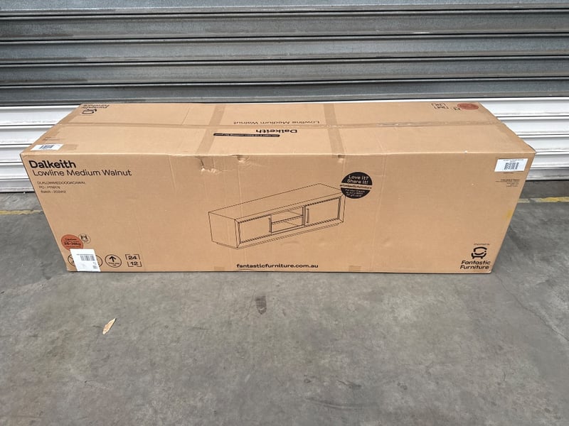RRP; $749, Fantastic furniture Dalkeith Walnut TV Unit, DLKLOWMEDOOOACAWAL, appears to have crack dimensions approx; L 180cm x D 48cm x H 50cm
