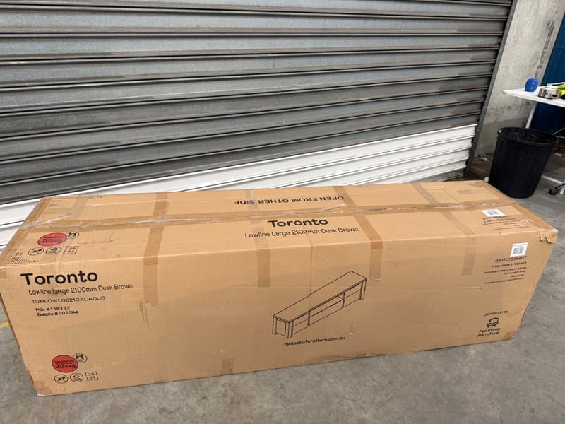 RRP; $799, Fantastic furniture Toronto Dusk Brown TV Unit, Model; TONLOWLGE210ACADUB, appears to have damagedimensions approx; L 210cm x D 45cm x H 55cm