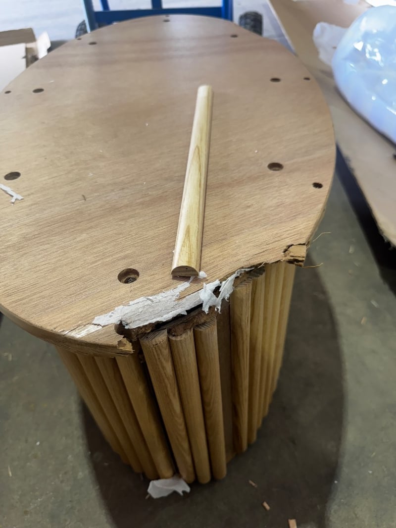 Table, oval marble/oak coffee tableDamage noted on standRRP: $1990Dimensions: 140x80