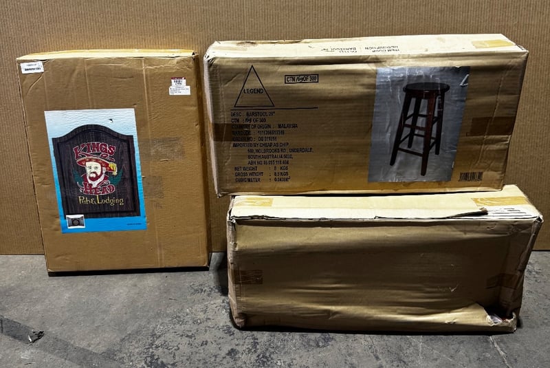 Houseware, assorted houseware items including 3x barstool 29" and a Kings Head dartboard, large Condition unknown, inspection recommendedSold as lot
