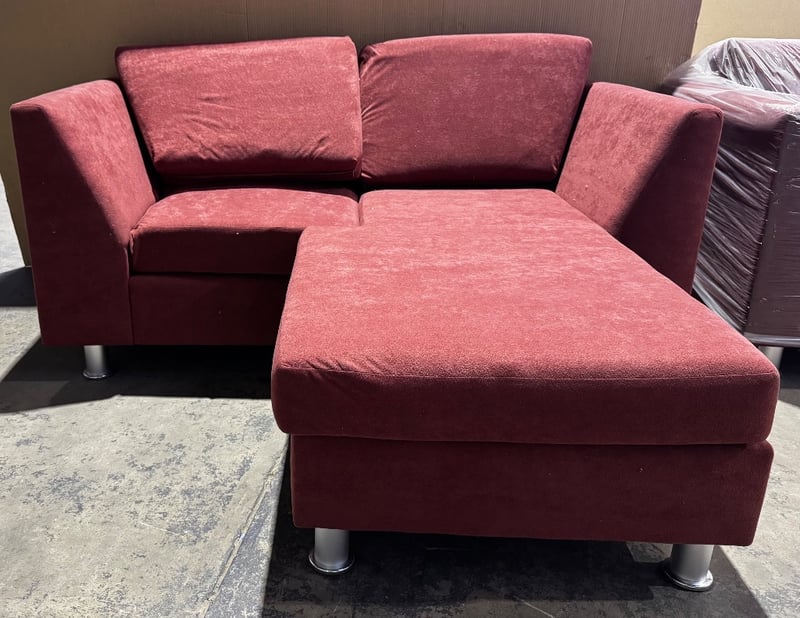 Lounge, red fabric style lounge set including, 1x 3 seater and 1x 2 seater