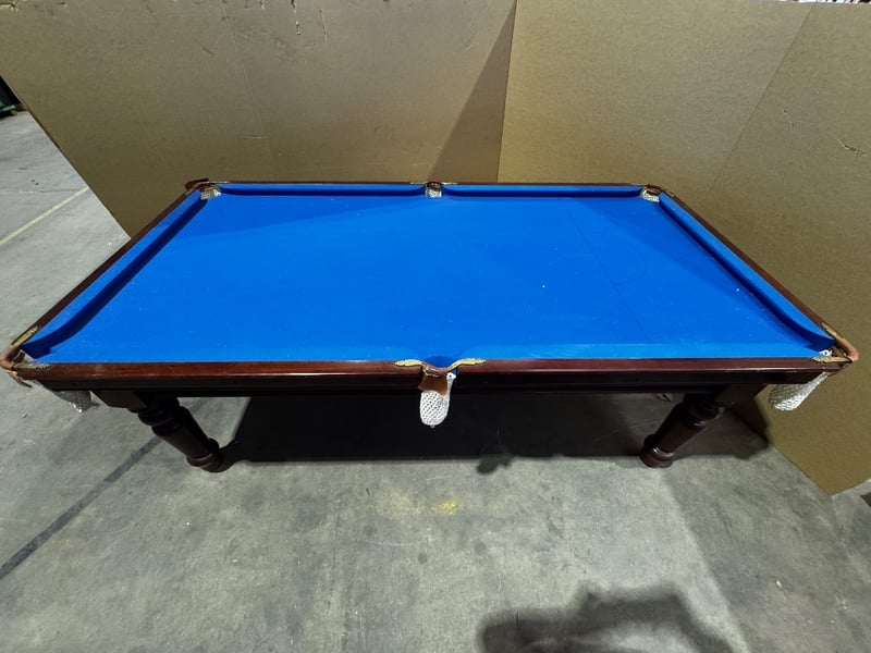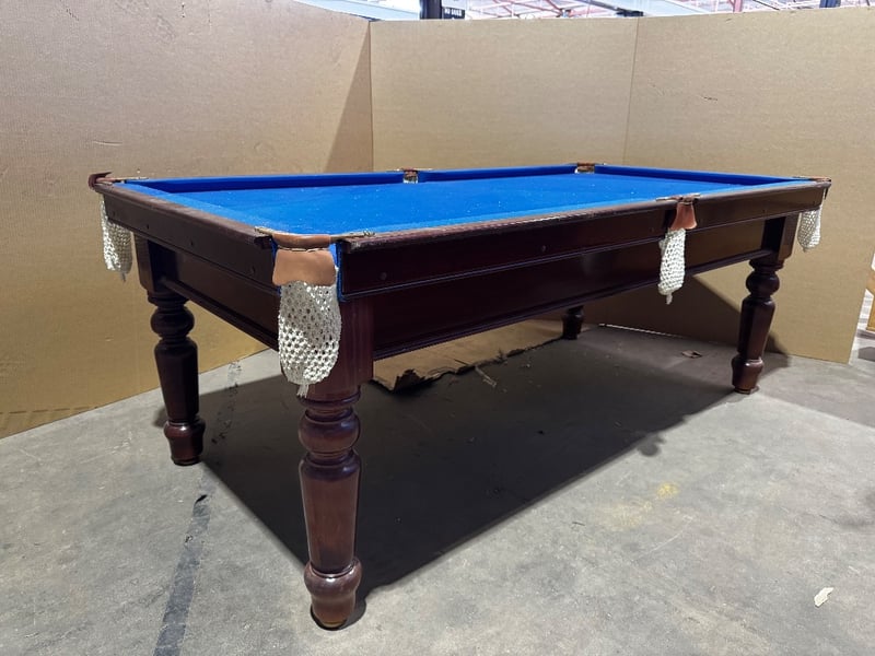 Pool table, oak style traditional pool table with blue clothDimensions approx: W: 130cm L: 220cm H: 84cm