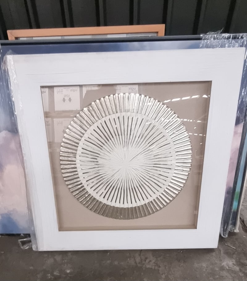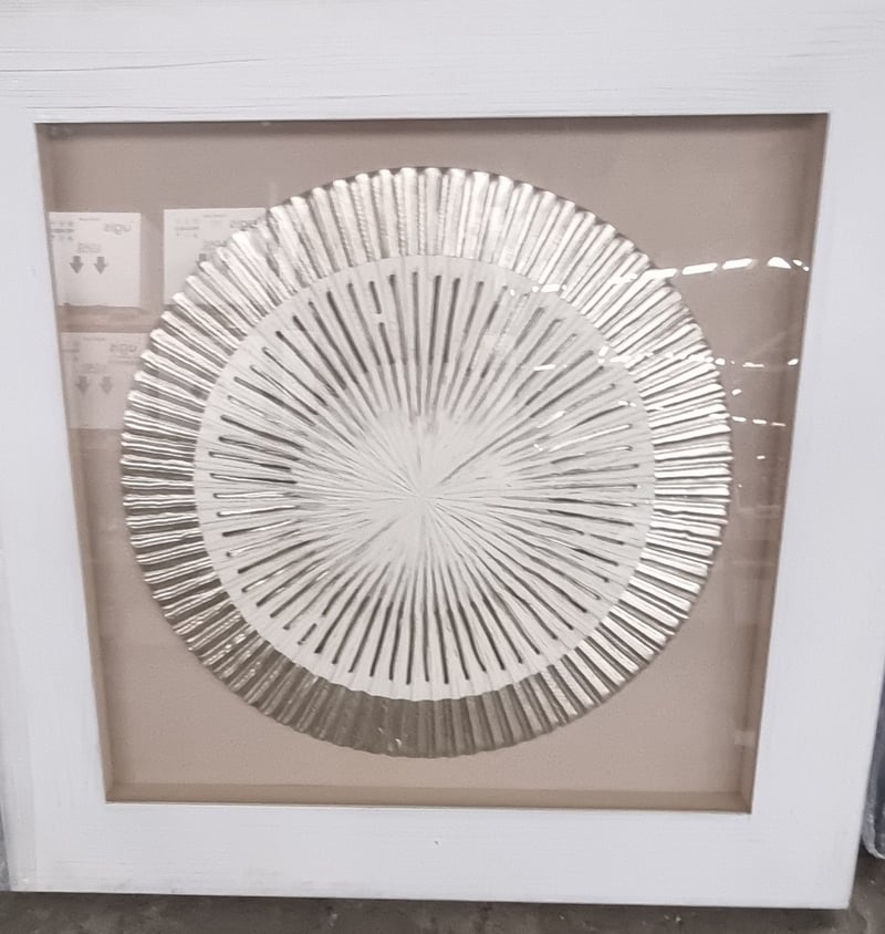Hanging wall art, white border. Dims: 130x 130x 130 lcm Note: signs of wear